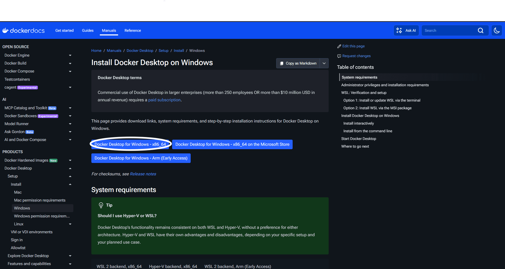 Click "Docker Desktop for Windows - x86_64". Docker Desktop will be downloaded into your computer.